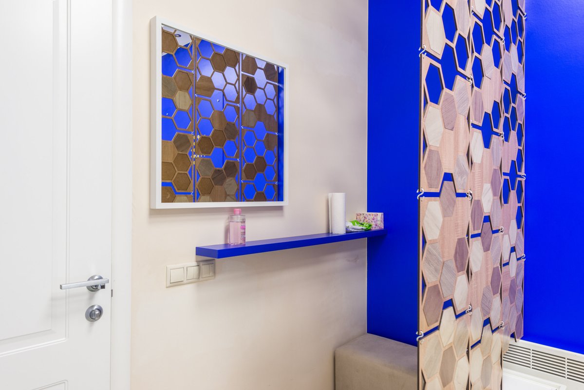 Я довольна расположением студии, мастер всё сделал отлично, проконсультировал и дал рекомендации по уходу. Обстановка в студии приятная, в синих тонах, персонал встречает очень вежливо.